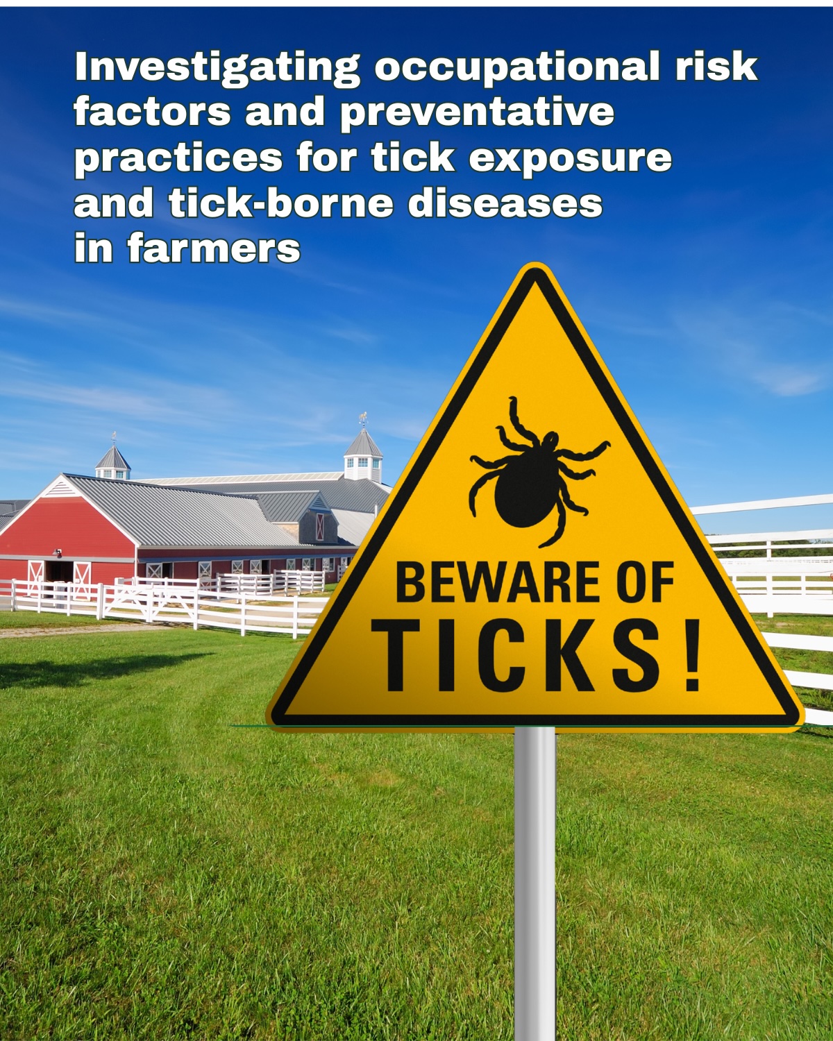The proposed project aims to identify occupational risk factors for tick exposure and tick-borne diseases in Iowa farmers, as well as capture knowledge, attitudes, and practices on perceived risk and prevention strategies. A key aspect of this proposed research is collaboration with community advocacy groups to consult on the study design, the data collection and interpretation, and our dissemination plan. As climate change is increasing the prevalence of ticks and tick-borne disease, this pilot project is a first step in a research continuum that seeks to develop effective and feasible interventions to protect farmers. The project is expected to have important positive impacts on farmers’ health by understanding, and eventually minimizing, the risk of a growing occupational threat through community partnerships.